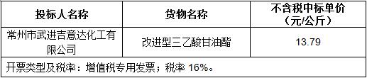 标段四:改进型三乙酸甘油酯不含税中标单价