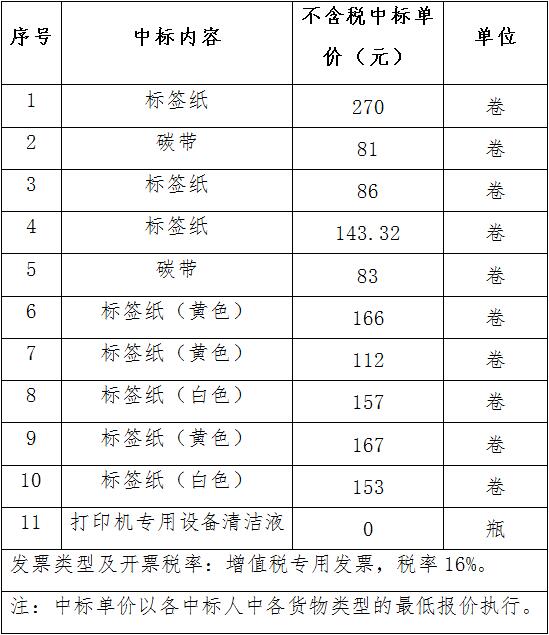 二、招标项目简要说明:标签纸、碳带、打印机专用设备清洁液等1批。