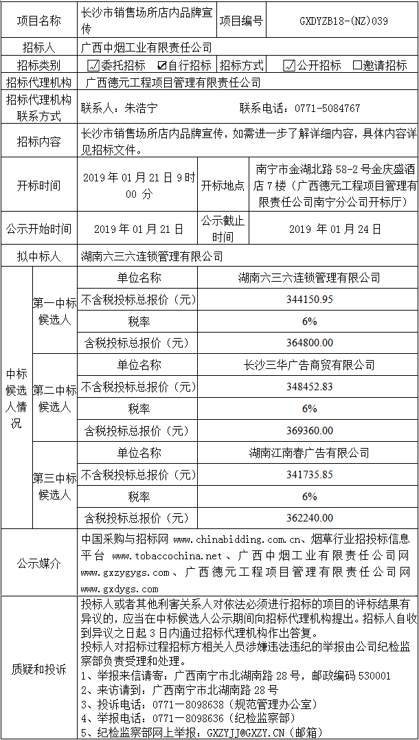 中标候选人公示(长沙市销售场所店内品牌宣传)1