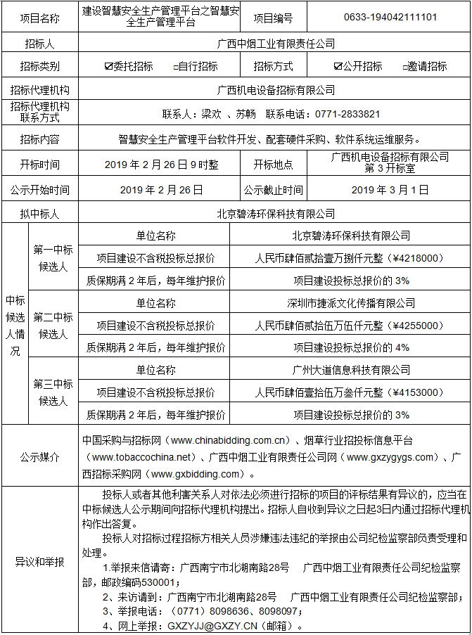中标候选人公示(建设智慧安全生产管理平台之智慧安全生产管理平台 项目编号:0633-194042111101)