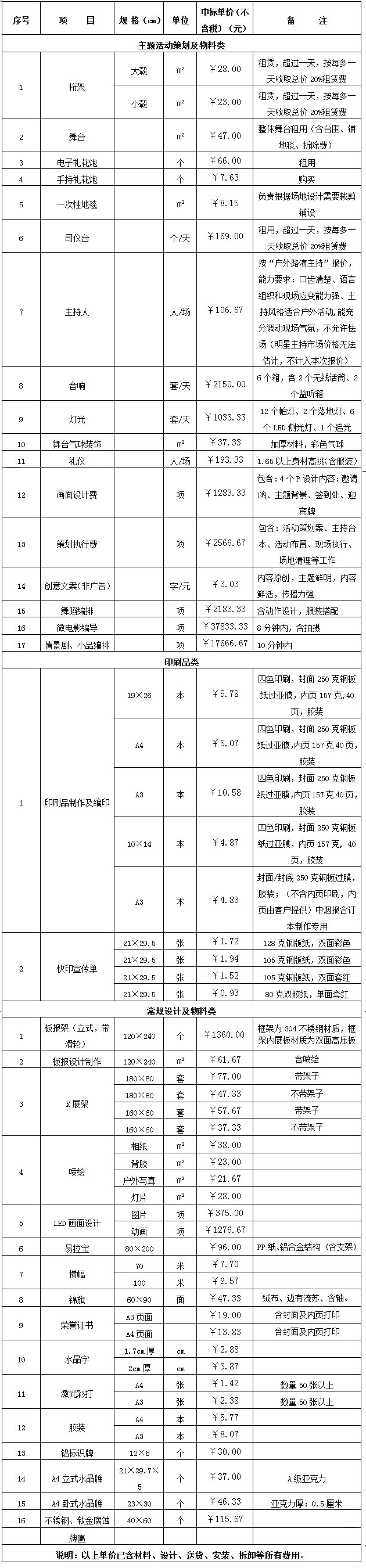精神文明建设零星工程服务供应商招标(KWAD5G2019145)中标价格
