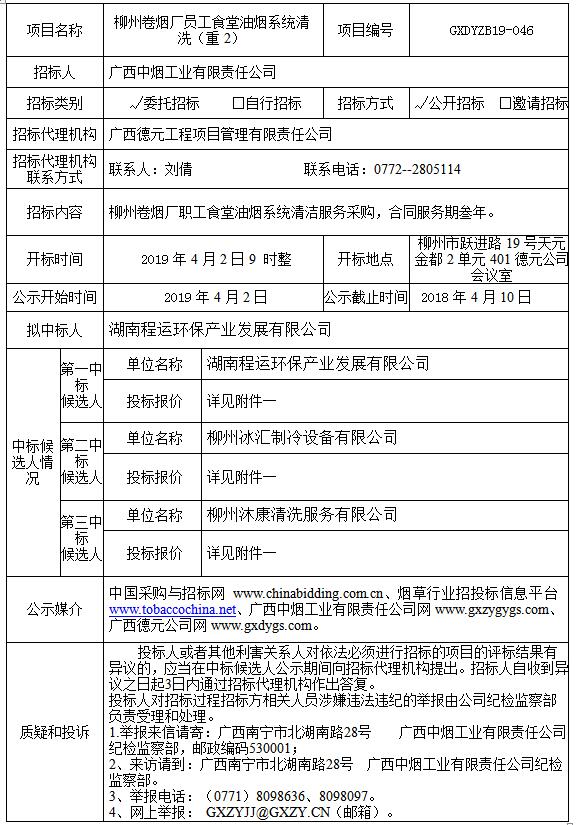 中标候选人公示(柳州卷烟厂员工食堂油烟系统清洗(重2))