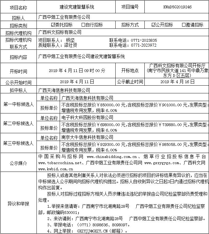 中标候选人公示(建设党建智慧系统(KWAD5G2019246))