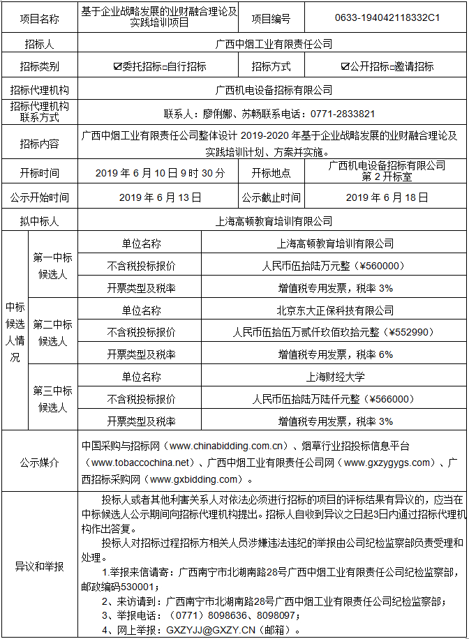 中标候选人公示(基于企业战略发展的业财融合理论及实践培训项目(项目编号:0633-194042118332C1))