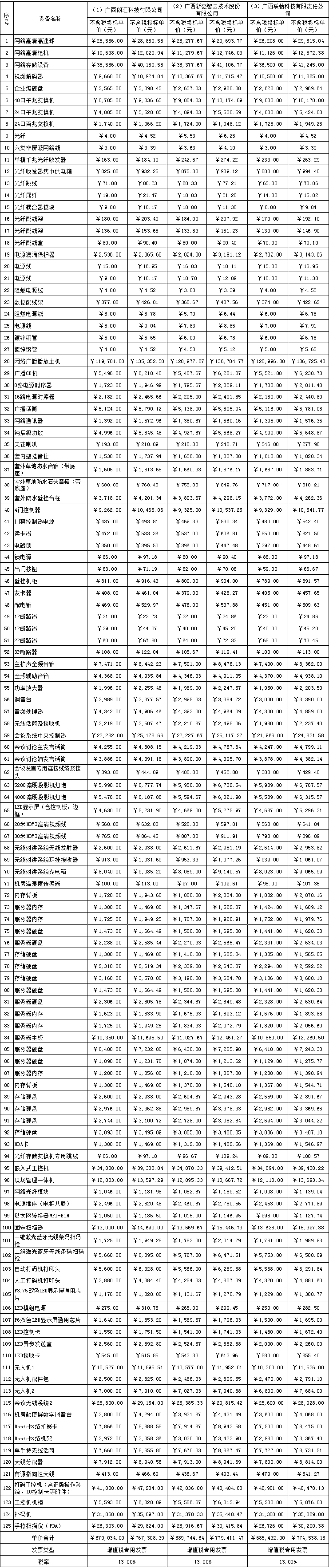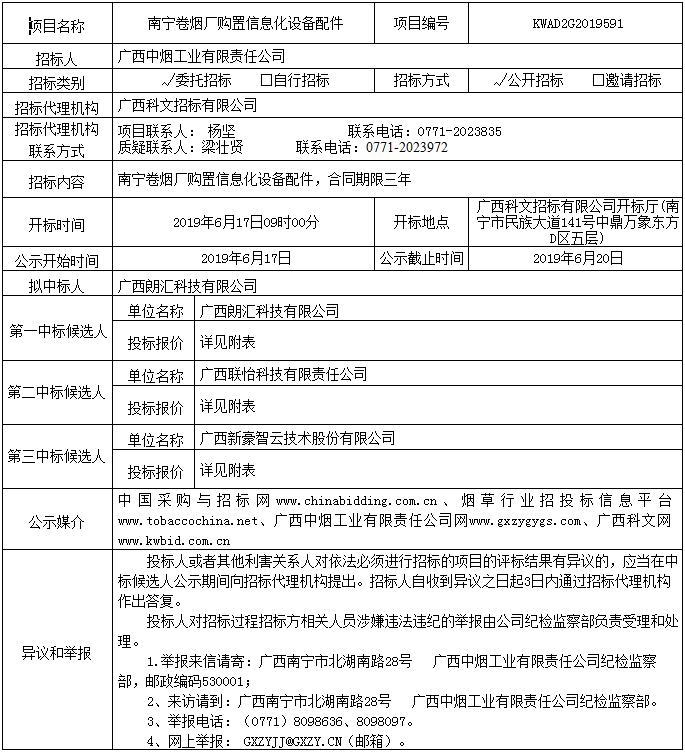 中标候选人公示(南宁卷烟厂购置信息化设备配件)