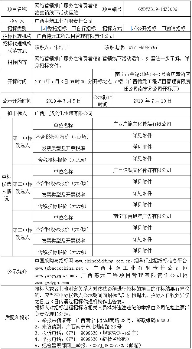 中标候选人公示(网络营销推广服务之消费者精准营销线下活动运维)