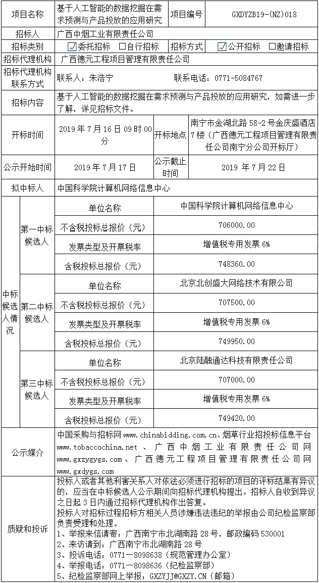 基于人工智能的数据挖掘在需求预测与产品投放的应用研究中标候选人公示
