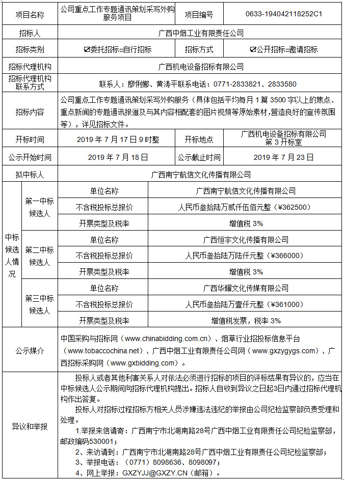 中标候选人公示(公司重点工作专题通讯策划采写外购服务项目)