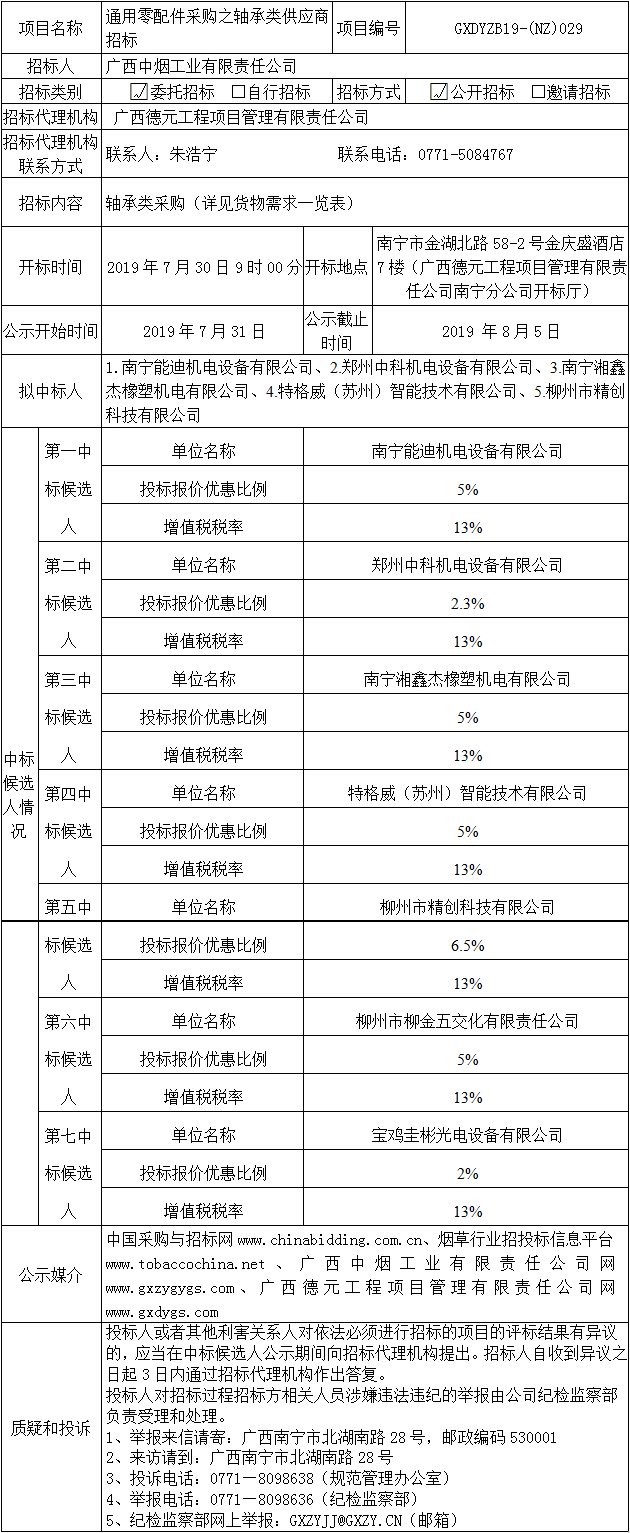 中标候选人公示