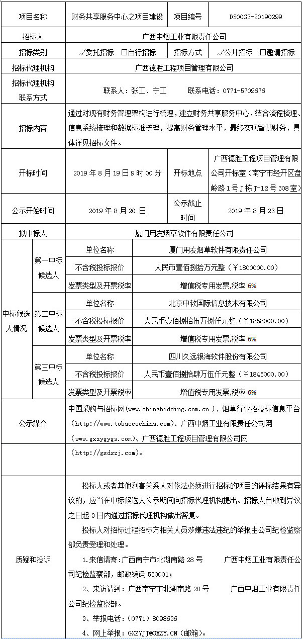 中标候选人公示(财务共享服务中心之项目建设)