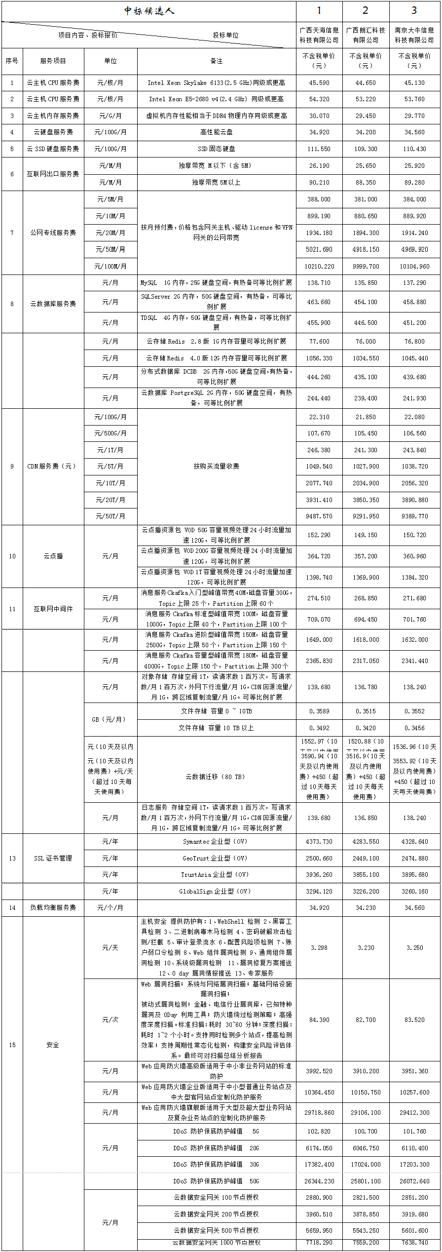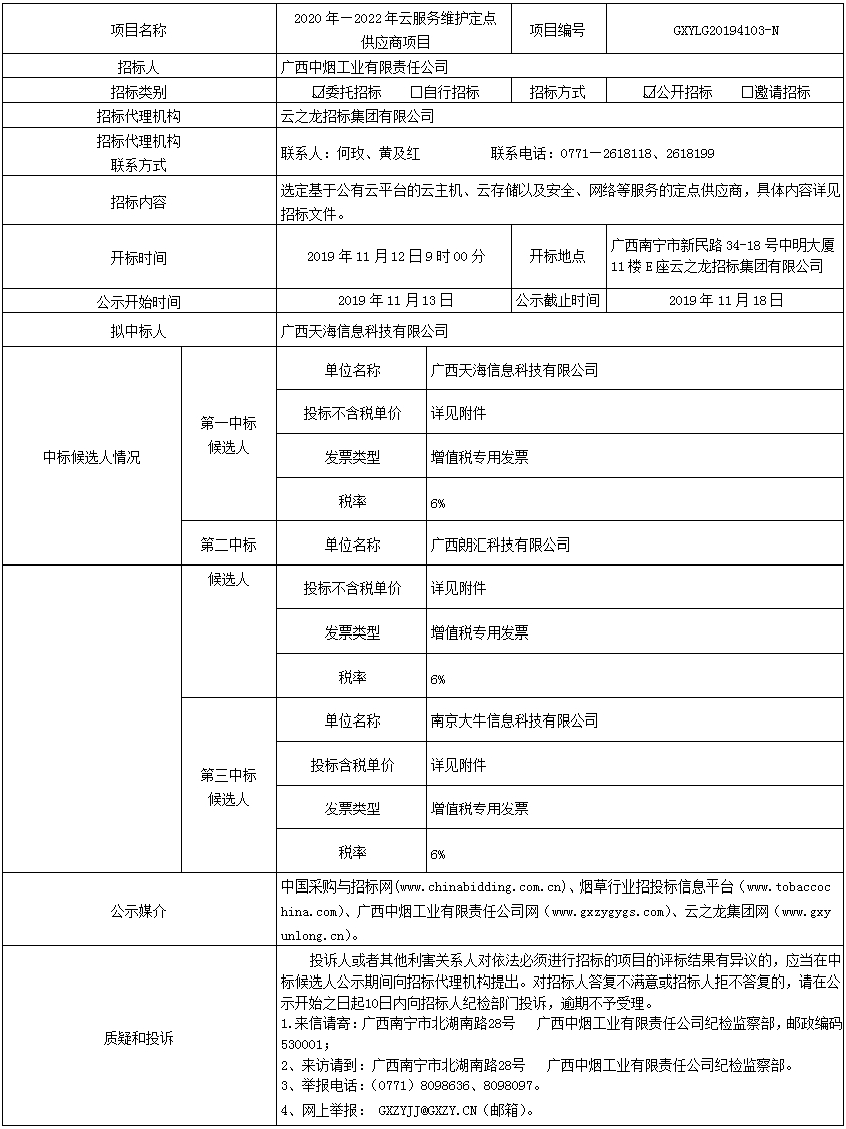 2020年—2022年云服务维护定点供应商项目(GXYLG20194103-N)中标候选人公示