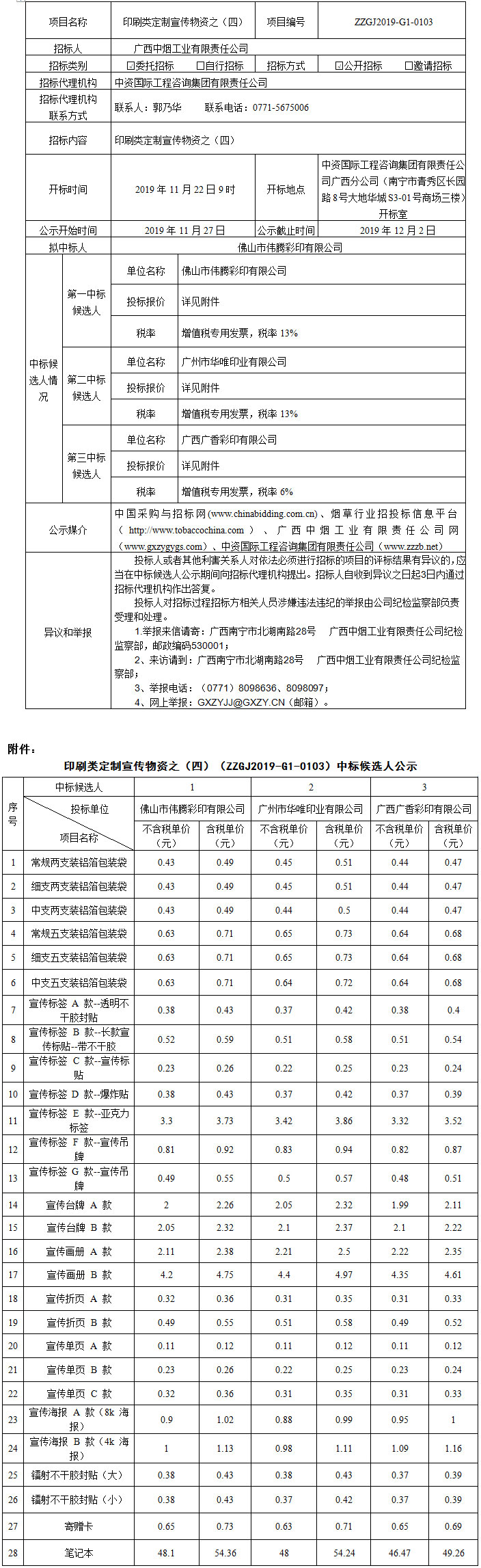 中标候选人公示(印刷类定制宣传物资之(四))