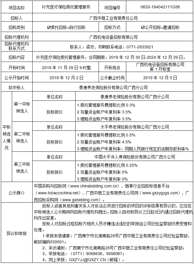中标候选人公示(补充医疗保险委托管理服务(项目编号:0633-194042111G56))