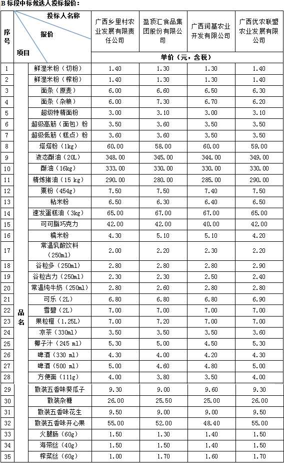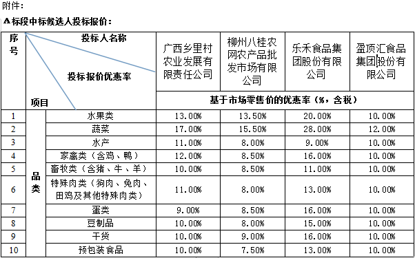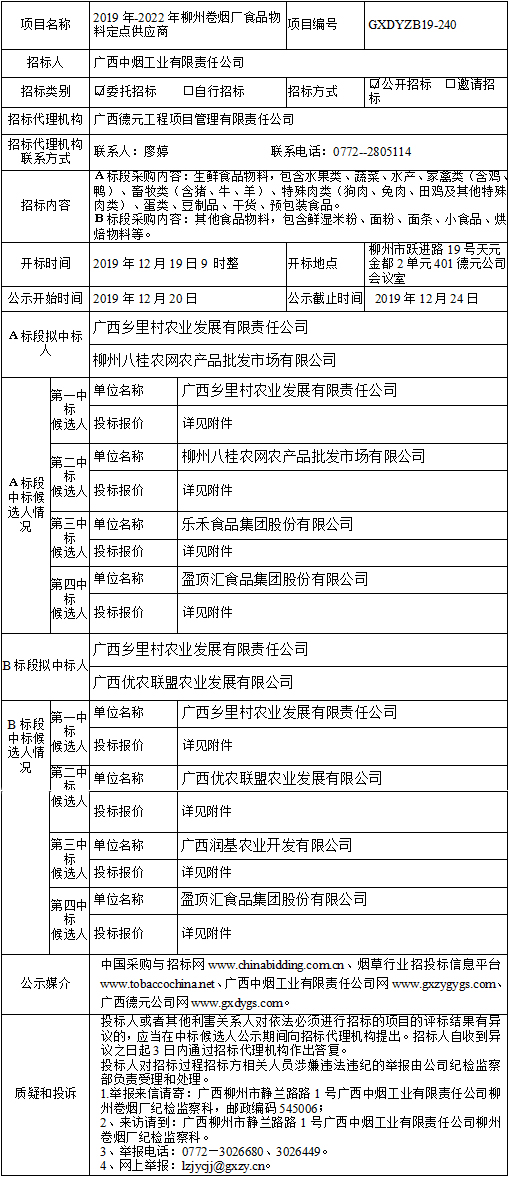 中标候选人公示(2019年-2022年柳州卷烟厂食品物料定点供应商)