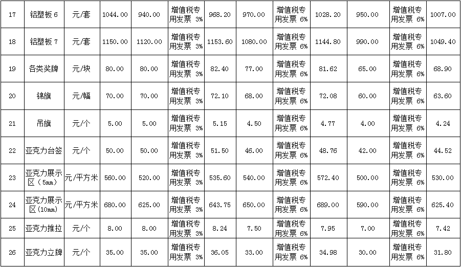 | 不含税投标报价 (元/平方米) | 详见附件 | |||||