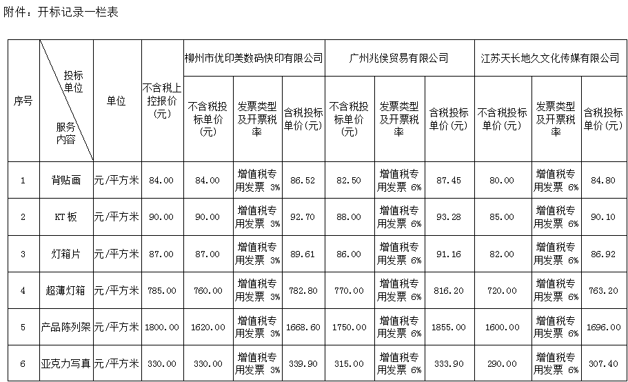 | 第三中标候选人 | 单位名称 | 柳州市优印美数码快印有限公司 | ||||
