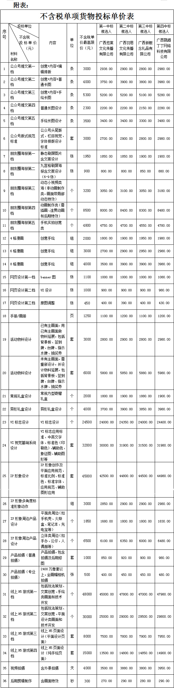 | 拟中标人 | 广西悠棠文化传播有限公司、广西羽思文化传播有限公司 | ||||