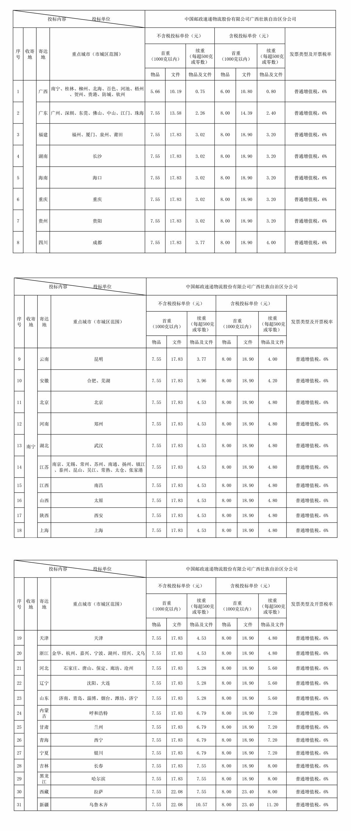 中标单位:中国邮政速递物流股份有限公司广西壮族自治区分公司