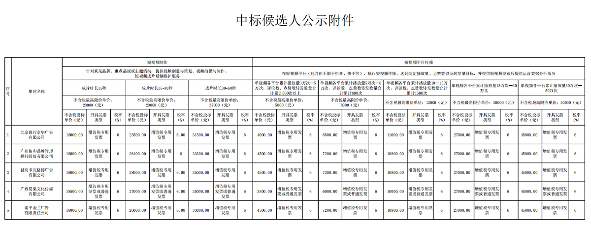 | 拟中标人 | 昆明卡瓦格博广告有限公司、北京盛行京华广告有限公司、广州集和品牌管理顾问股份 | |||