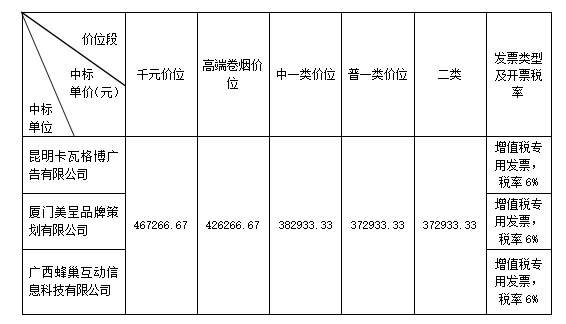 广西德胜工程项目管理有限公司受广西中烟工业有限责任公司委托,于2020年9月22日就品牌形象设计与宣传推广供应商库(项目编号: DS00G3-20200235)采用公开招标方式进行重新招标,现将本次招标的中标结果公告如下: